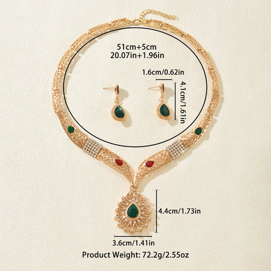 3Pcs Emerald Crystal Necklace Earrings Niche High-end Design Collarbone Chain Versatile Jewelry Set Banquet Wedding Jewelry Set