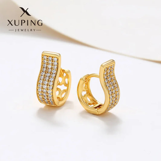 Huitan Unique Design Hoop Earrings Women Hollow Out Irregular Gold Color Earrings Wedding Engagement Party Luxury Trendy Jewelry