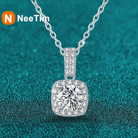 NeeTim 1ct 2ct Moissanite Pendant Necklace S925 Sterling Silver Sparkling Lab Diamond Chain for Women Engagement Fine Jewelry