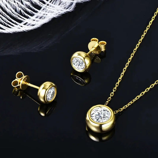 IOGOU Real 3ctw. D Color Moissanite Jewelry Set 925 Silver 18k Gold Plated Pendant Necklace Stud Earrings Set for Women Men Gift