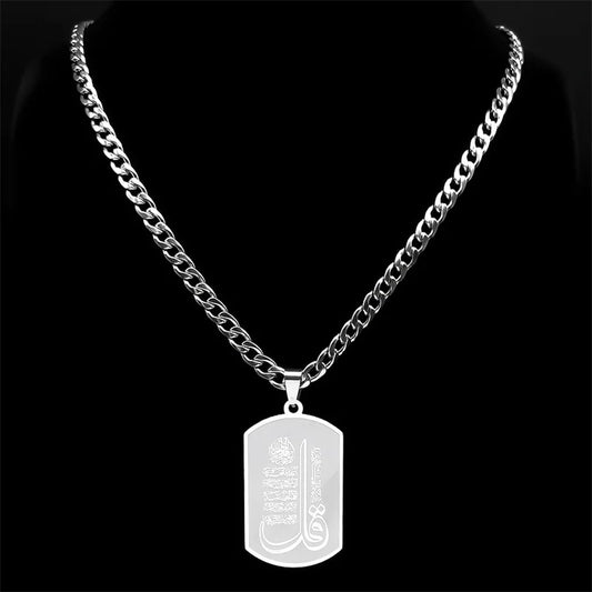 Islam Muslim Religious Verses Quran Necklace for Women Men Stainless Steel Silver Color Long Chain Necklaces Jewelry N3143S03