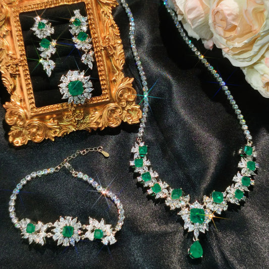 Vintage Lab Emerald Diamond Necklace 925 Sterling Silver Engagement Wedding Chocker Necklace for Women Bridal Jewelry Gift