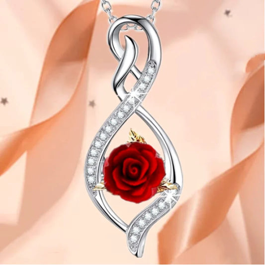 Fashion Rose Necklace Cross Zircon Pendant Engagement Necklaces for Women Rose Jewelry Wedding Accessories Anniversary Gift