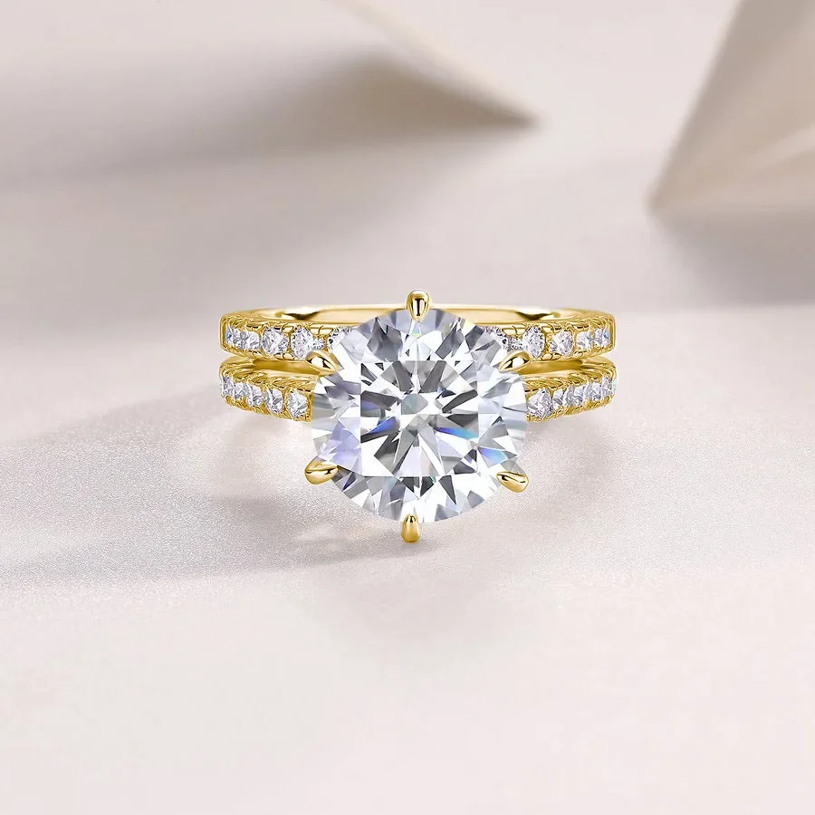 Features a brilliant 5.75CTW round-cut moissanite, offering exceptional fire and sparkle that rivals diamonds.