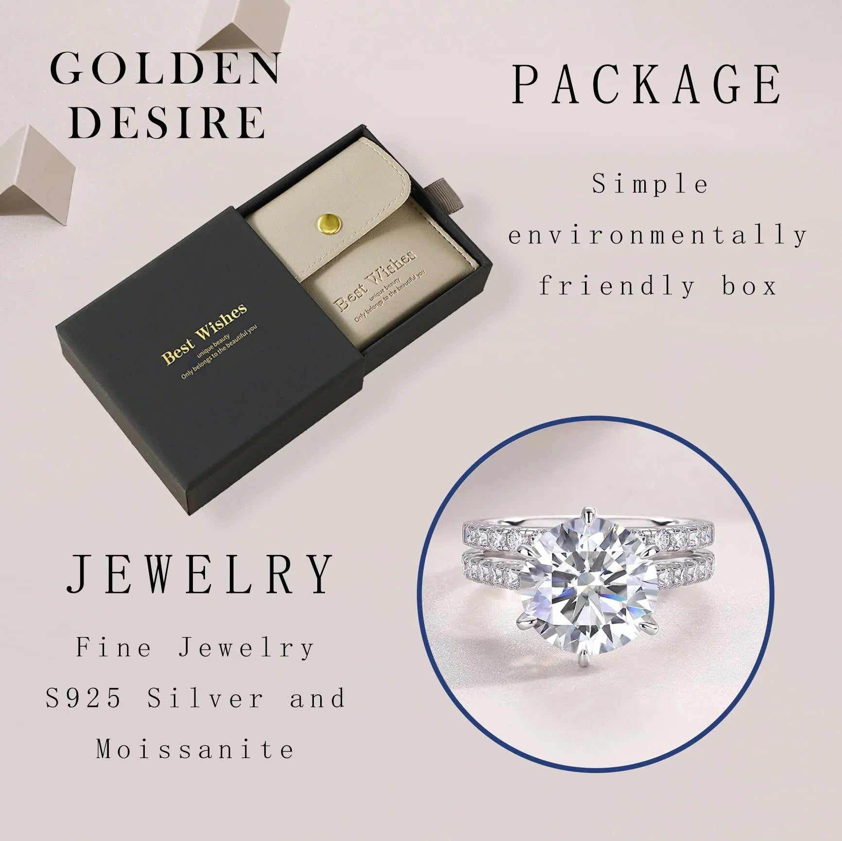 Inspired by everlasting love, this ring set symbolizes unity and brilliance. The main round-cut moissanite reflects the purity of a lifelong commitment, while the accompanying band enhances the sparkle—just like two hearts shining together.